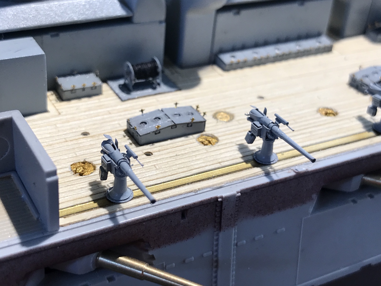 у PONTOS очень удачные леера, даже есть подпятник у стоек, очень похоже на оригинальные. Сначала думал сделать леера как у YAMATO от TAMIYA отдельно стойки вставляются в отверстия, а медная проволока тянется через отверстия в стойках. Приобрел даже стойки от NorthStarModels но они оказались без отверстий, сломав два сверла плюнул на это дело и поставил родные, тем более они с имитацией провиса и есть подпятник.