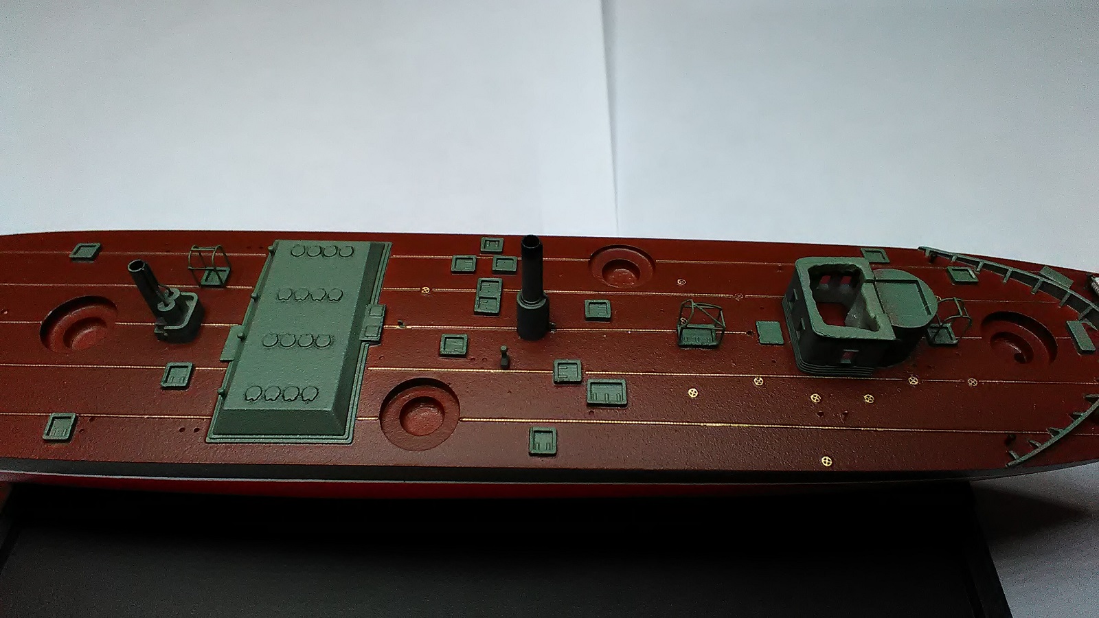 @Михаил, коллега! А вот каркасы над сходными люками зря покрасил. Обычно, в те времена, их не красили, а надраивали до блеска цвета бронзы. И кстати, нащельники смотрятся хорошо, но..... А где поперечные?!