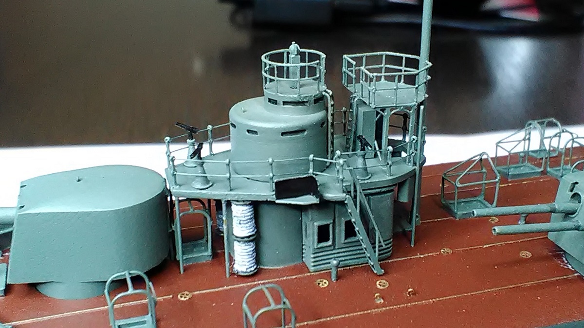 Небольшая подвижка, затянул леера на мостике. Начал было проволокой из набора лееров, но очень быстро отказался от неё, слишком сложный путь и промежутки небольшие,