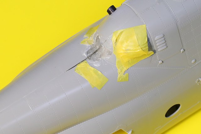 Снимал по очереди полоски маски с хвостовой балки, красил, затем давал краске подсохнуть и наклеивал полоску обратно.