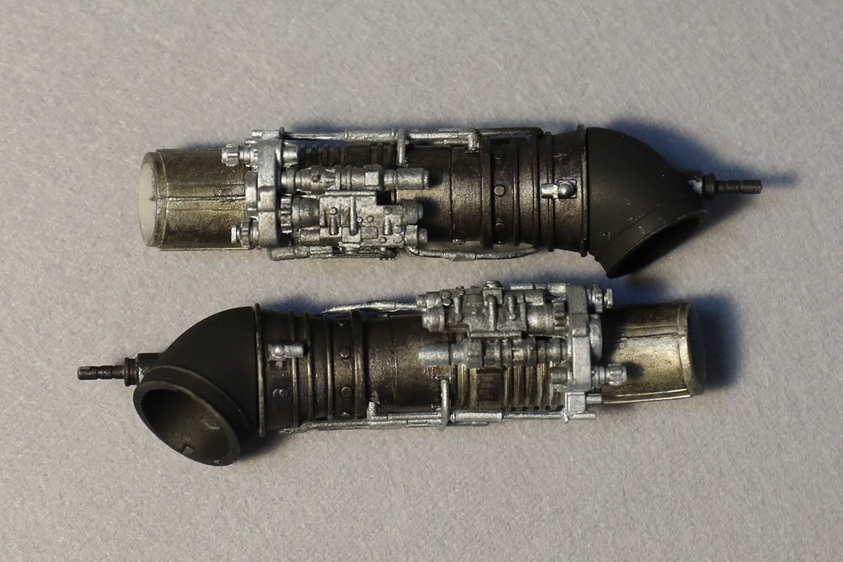 Движки. Хочется с ними повозиться ещё, но это может затянуться до бесконечности. Тем более, есть ненулевая вероятность того, что капоты будут закрыты и все эти старания окажутся нафиг не нужны никому. Сделаю переход от корпуса на выхлоп более плавным по оттенку и всё, хватит.
