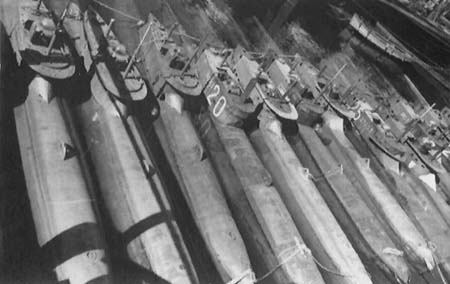 Захваченные лодки войсками союзников.
