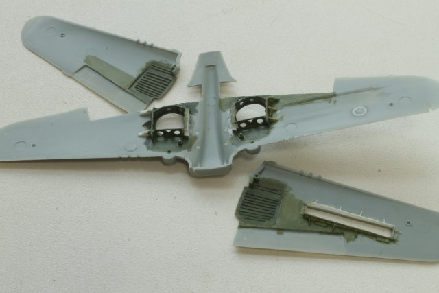 Итак, почти сделал крылья. Сделал ниши, удалив то непотребство, что дает производитель. Про чехлы знаю, более того, на фото видно, что 450-й сквадрон использовал чехлы. Но не мог устоять, чтобы не показать красоту основных ниш.