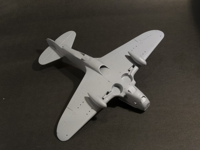 14. Поверхность всю проклепать (в жестком пластике заклепки будут маленькими и почти незаметными). Настоящий Р-40 имел заклепки "в потай".