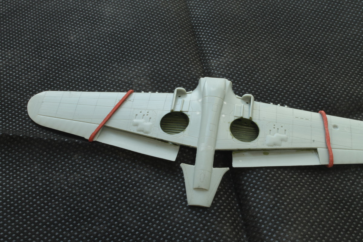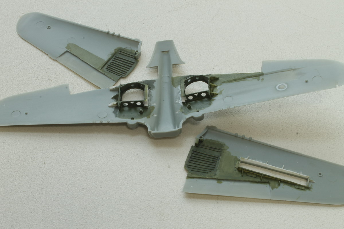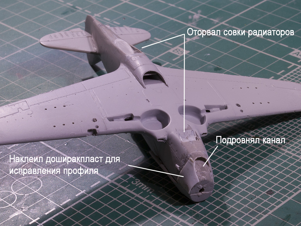Закруглил выштамповки под казенники пулеметов снизу крыла. Производитель дает их нашлепками с угловатыми торцами.