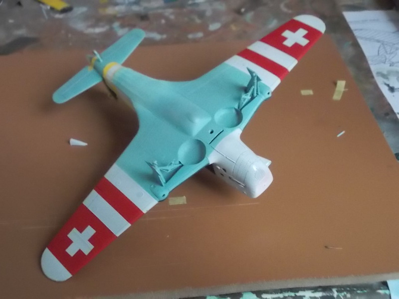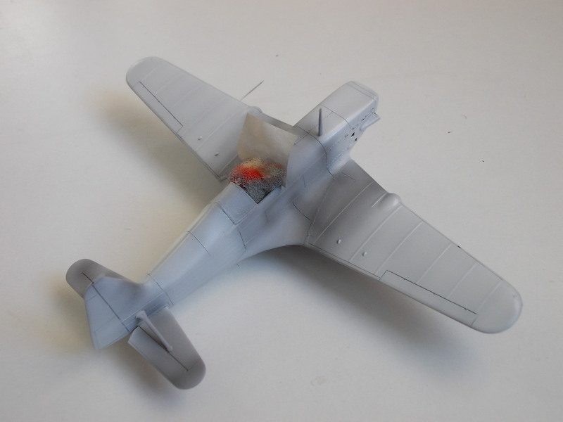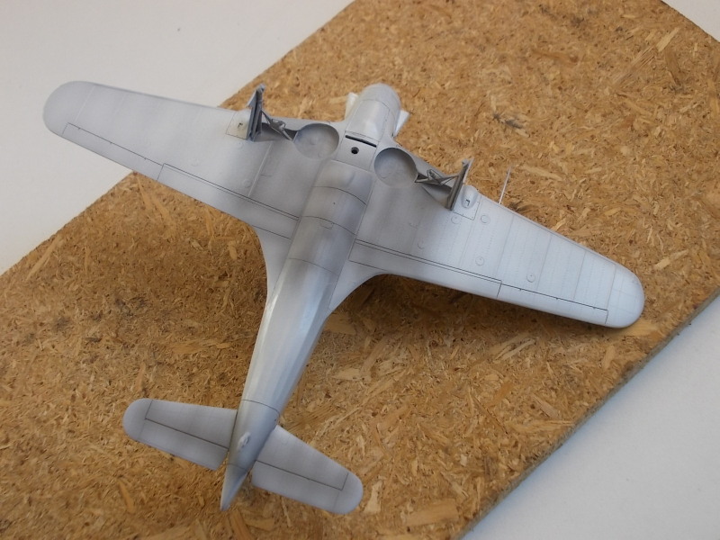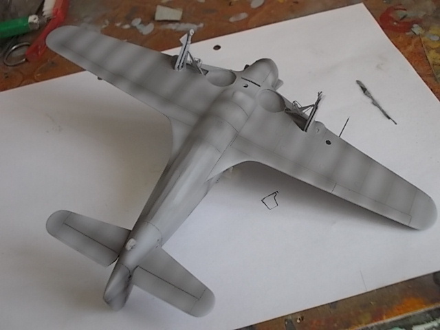 Что-то смущал меня зализ центроплана.Потом понял - он меньше чем надо и не так сделан,как в реальности.Зашпаклевал и убрал лишнее,положил фольгу,стало правильнее.