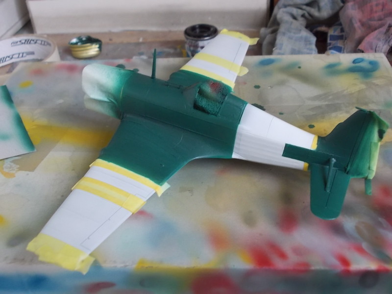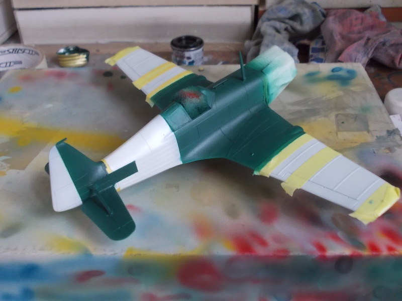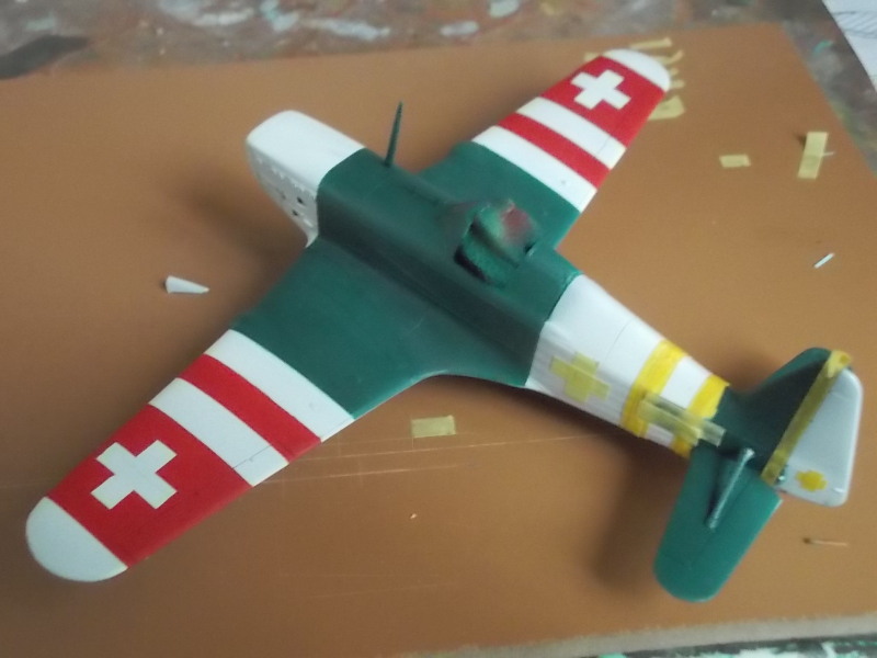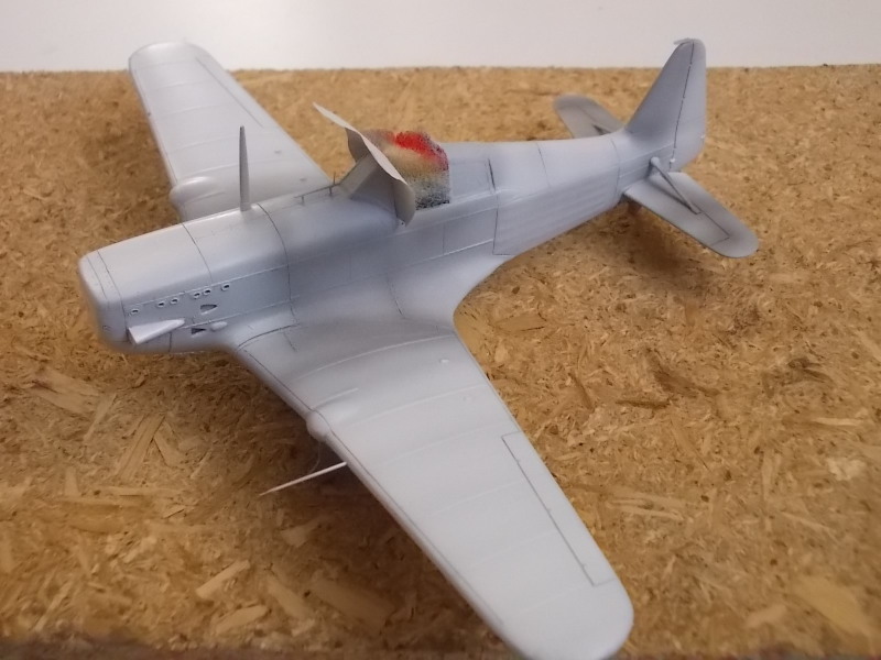 Покрасил красненьким,надеюсь,что успею закончить модель.Правда при снятии масок оторвался воздухозаборник.