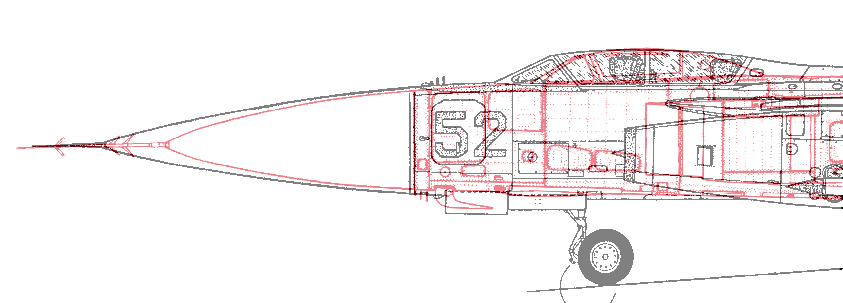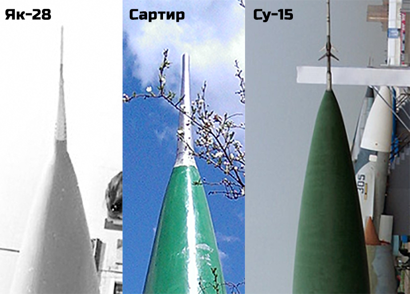 Тут видно, что из-за того, что конус Су-15 короче, он и выглядит по-другому. Изгибы конуса покруглее выглядит, чем у представленного в первом посту сартира, а вот у Як-28 как раз такие же.