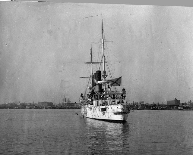 На крейсере - это шест между кормовым спонсоном и балконом.