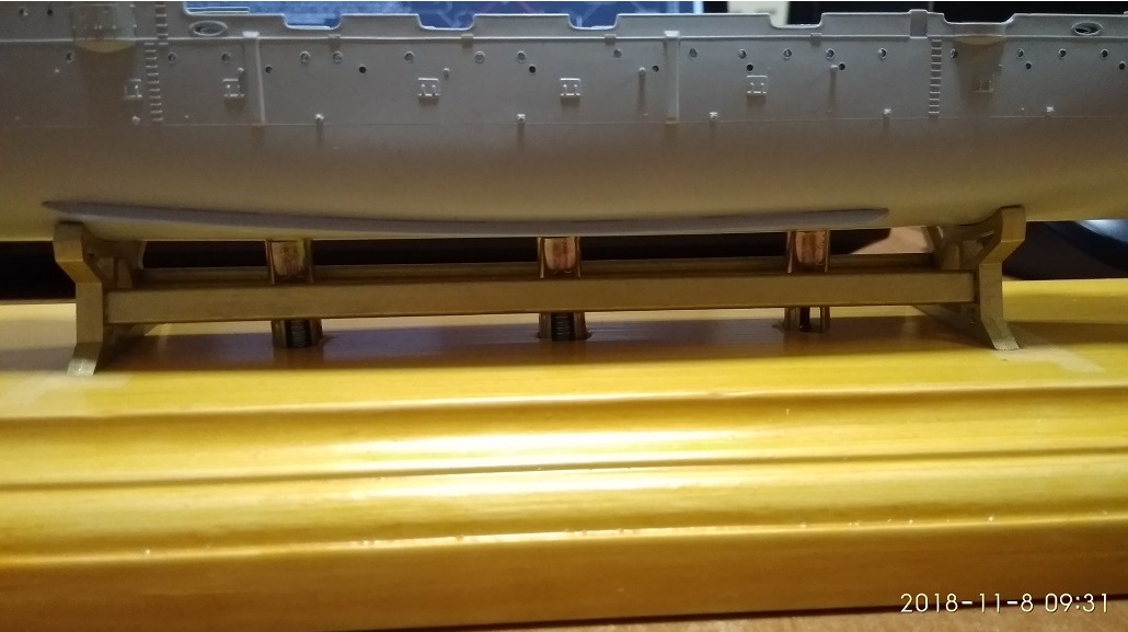 Начинает появляться время и потихоньку продолжаю делать крейсер. Доделал подставку, покрыл пропиткой, сделал в ней три сквозные шахты, две для болтов, и одна для провода подсветки корпуса. Соответственно рассверлил три отверстия в корпусе крейсера и вклеил две гайки. Также вклеил валы винтов. Думаю, скоро сделаю более подробно об этом видео на своем ютуб канале. Собственно на этом остановился и задумался, когда я собирал предыдущую модель, крейсер «Аврору», она без травления и деревянной палубы, там было проще, я покрасил корпус, дальше собирал «кверху». Здесь куча мелочёвки из травления по корпусу. Теперь думаю, покрасить корпус, а потом приклеивать всю травлёнку, покрашенную отдельно или наоборот…