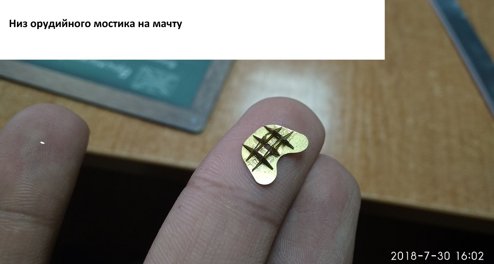 Но когда нужно сделать плавный изгиб, например я сейчас делаю балкон на "Варяге". Благо там форма фототравленного балкона повторяет форму балкона от звезды. Но проблема остается потому что фототравление форму сгибания не держит и стремится к распрямлению. Или орудия на мачтах 47мм, там вообще подставка мизерная и под конус.