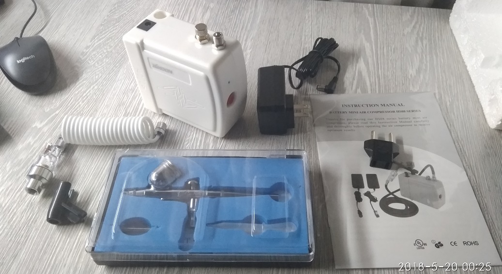 Аэрограф у меня тоже не пойми чей, года 3 уже крашу без проблем, а вот на компрессоре лучше не экономить, без ресивера вообще лучше не рассматривать и производительность не меньше 20 литров (воздуха) в минуту.