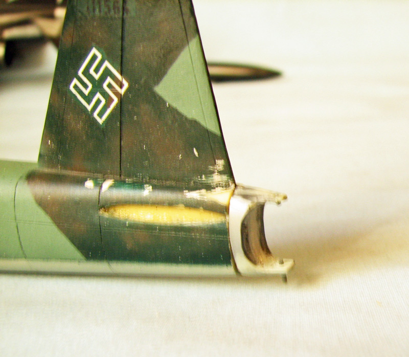 Долго искал заднюю часть самолета со стрелковой установкой, но не нашел, прошло много времени, наверное замели в мусор. Обычно утерянная деталь находится, когда сделаешь заново новую. Из литников и каких-то деталей сделал эту заднюю часть, надо будет подогнать, подшаманить, вставить пару иголок...