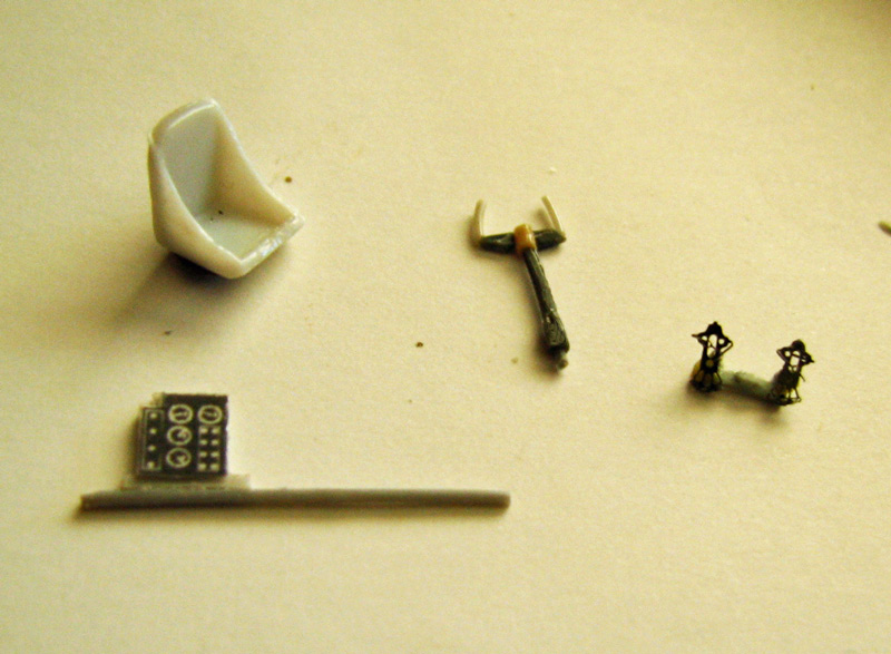 Сделал утерянные РУД, приборную панель, педали. В наборе было 2 кресла, но самолет 3-х местный - пилот, штурман и стрелок-радист, поэтому в запасниках нашел кресло от Ме-262 - будет креслом стрелка.