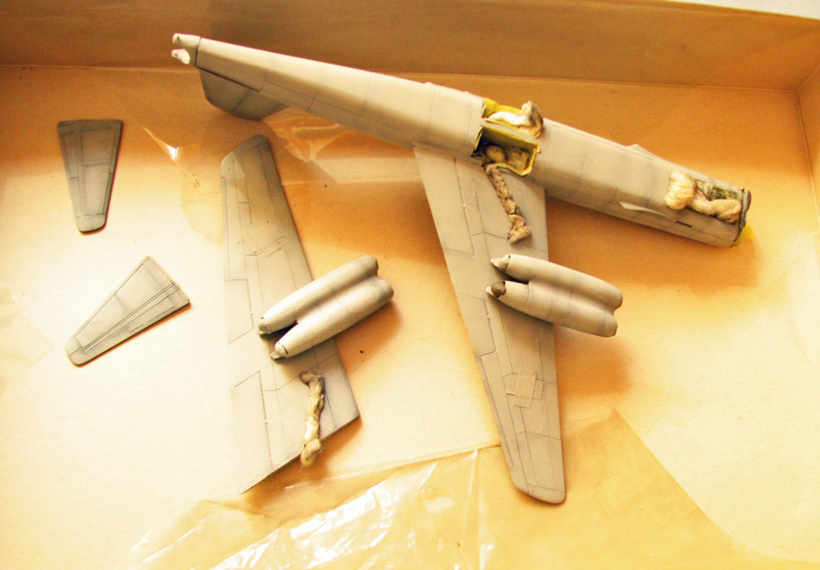 Приклеил заднюю стрелковую установку, нанес прешейдинг и стал красить низ и фюзель краской РЛМ76 от Ганзы.