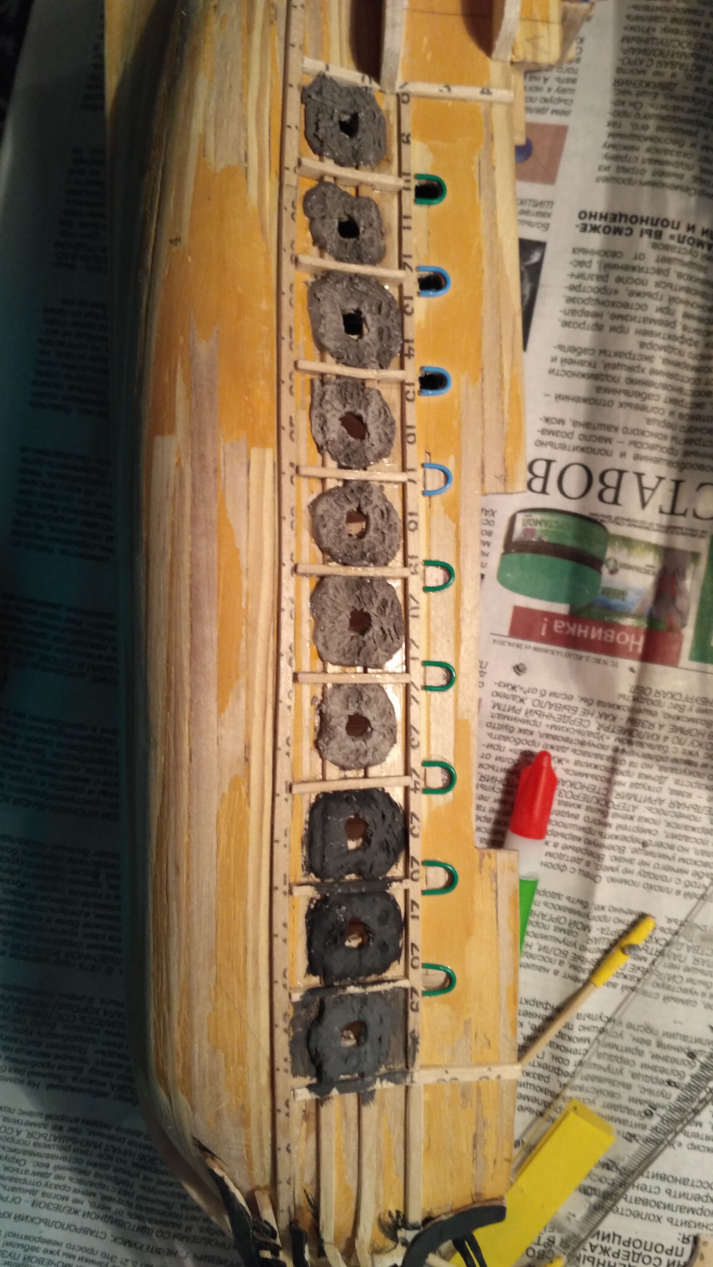 и еще один вопросик, пушки, располагающиеся на нижней батарейной палубе нужно прорабатывать полностью или только выходящее наружу дуло? на сколько мм нужно их высовывать, если длина корпуса 40 см, а ширина 10см?