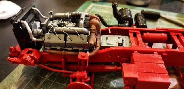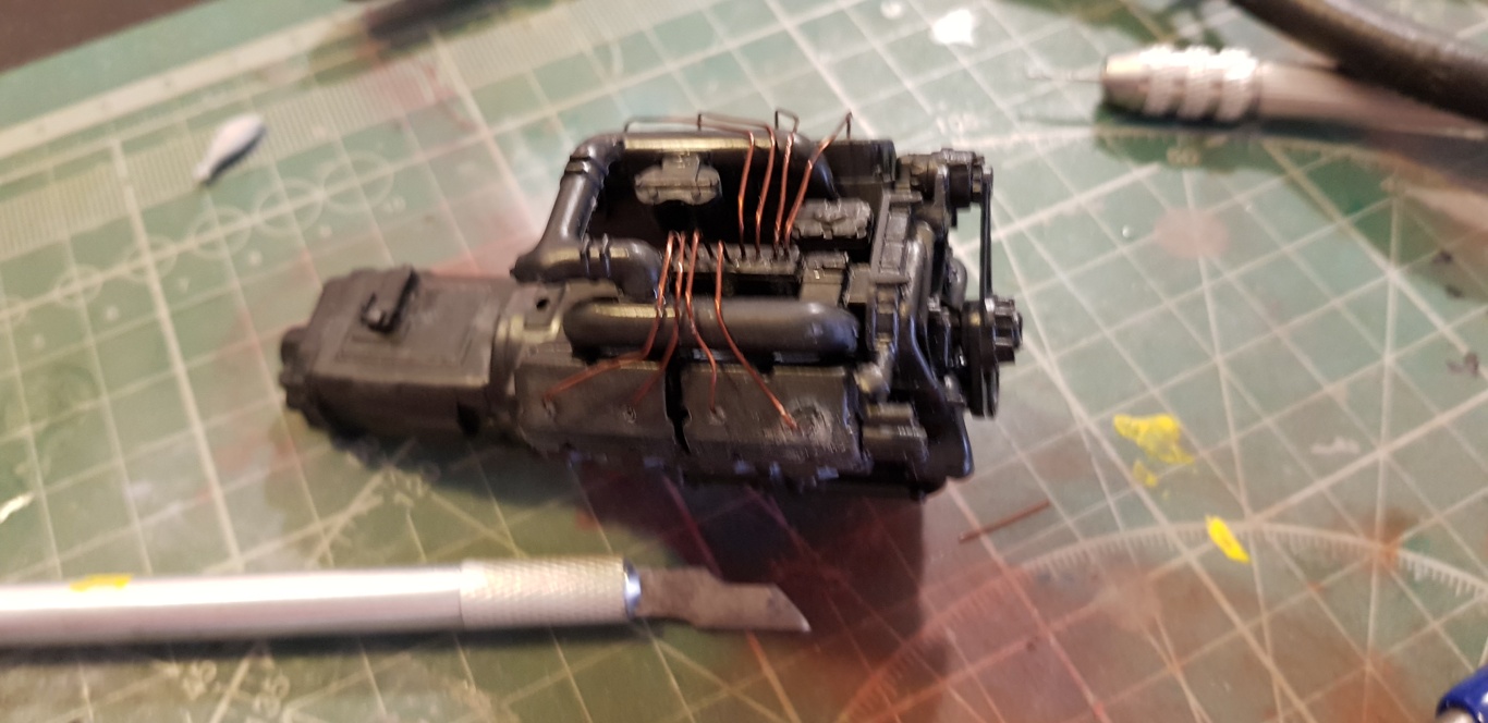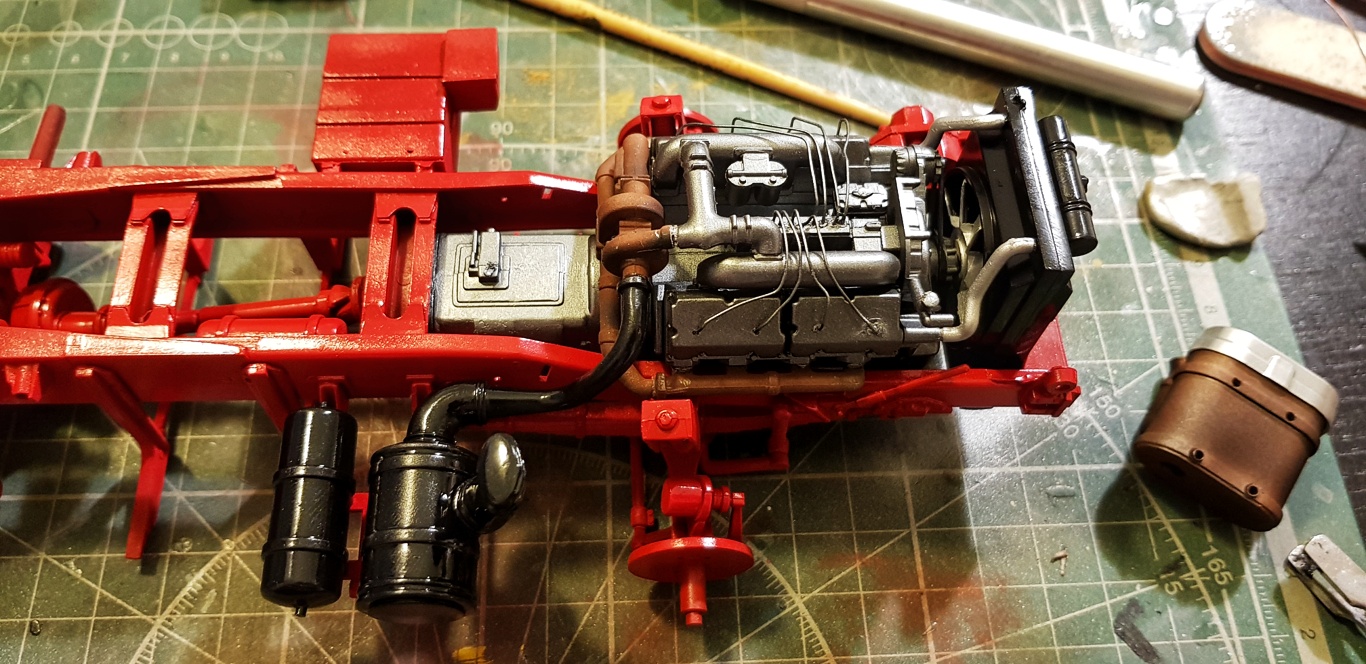 Смывочки бы на раму да и на мотор, а то как то плоско смотрится. И гаек не хватает на входе топливопроводов в головки блоков, смотрелось бы интереснее.