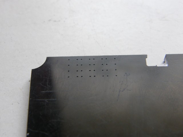 По технологии (ссылка) изготовил комплект киповых планок для палубы надстройки в районе ОР. В палубе надстройки в штатных местах станком с ЧПУ сделал попарно отверстия Ø 0,3 мм с расстояниями между центрами этих отверстий 1,1 мм.