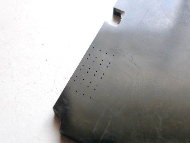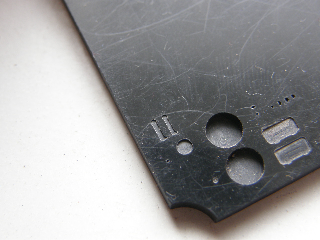 Из дошипласта толщиной 0,2 мм выгравировал комплект эпроновских лючков с более широкими отверстиями внизу под замки-защелки.