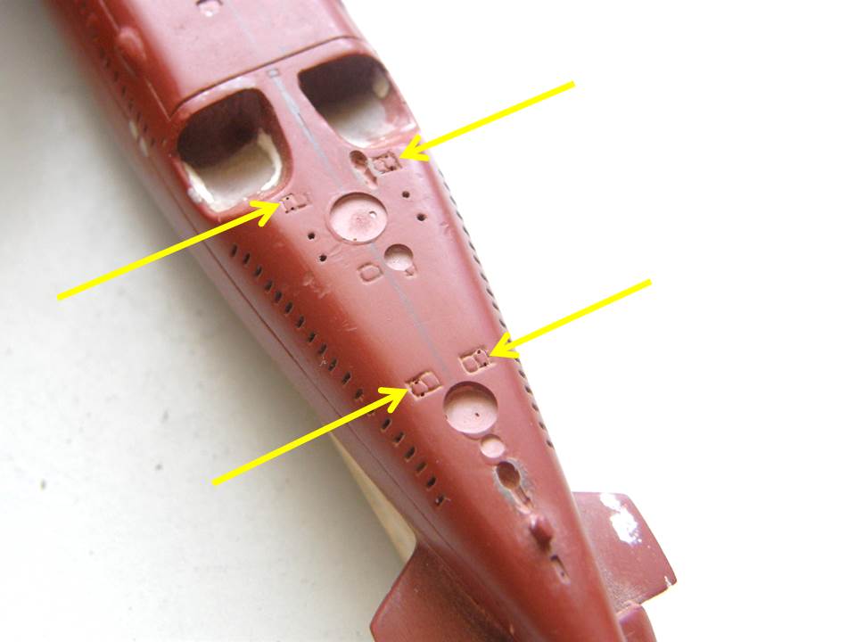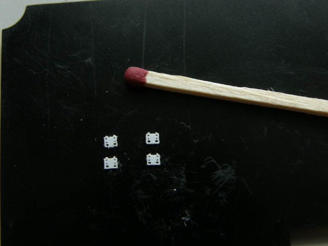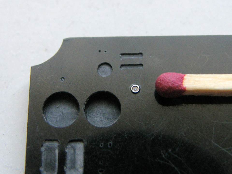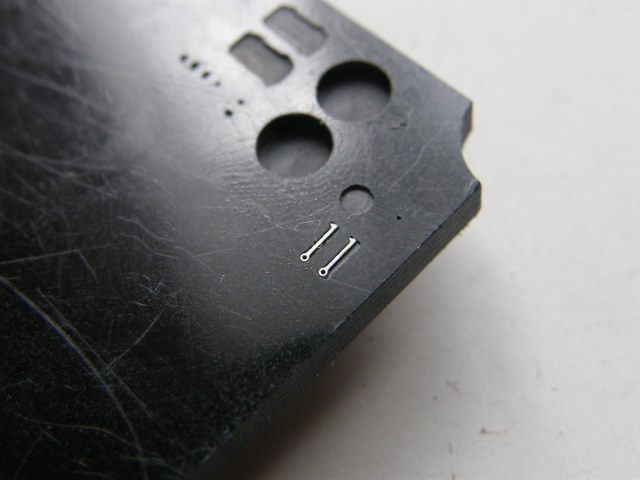 В палубе надстройки в штатных местах станком с ЧПУ сделал попарно отверстия Ø 0,3 мм с расстояниями между центрами этих отверстий 1,1 мм.