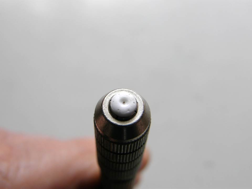 При изготовлении телевизионной камеры решалось две задачи: простота конструкции и сборки, и в тоже время обеспечение максимальной копийности устройства. Из медицинской иглы Ø 1,0 мм т длиной 2 мм сделал водонепроницаемый кожух телекамеры, из медицинской иглы Ø 0,7 мм сделал корпус самой телекамеры и для объектива телекамеры использовал кусочек синего оптоволокна Ø 0,3. Сборка всей конструкции производится как в матрешке, установкой одного элемента в другой без клея. В качестве испытательного стенда использовал пластик толщиной 3 мм, в котором сделал посадочное гнездо для кожуха телекамеры Ø 1,0 мм и глубиной 2 мм.