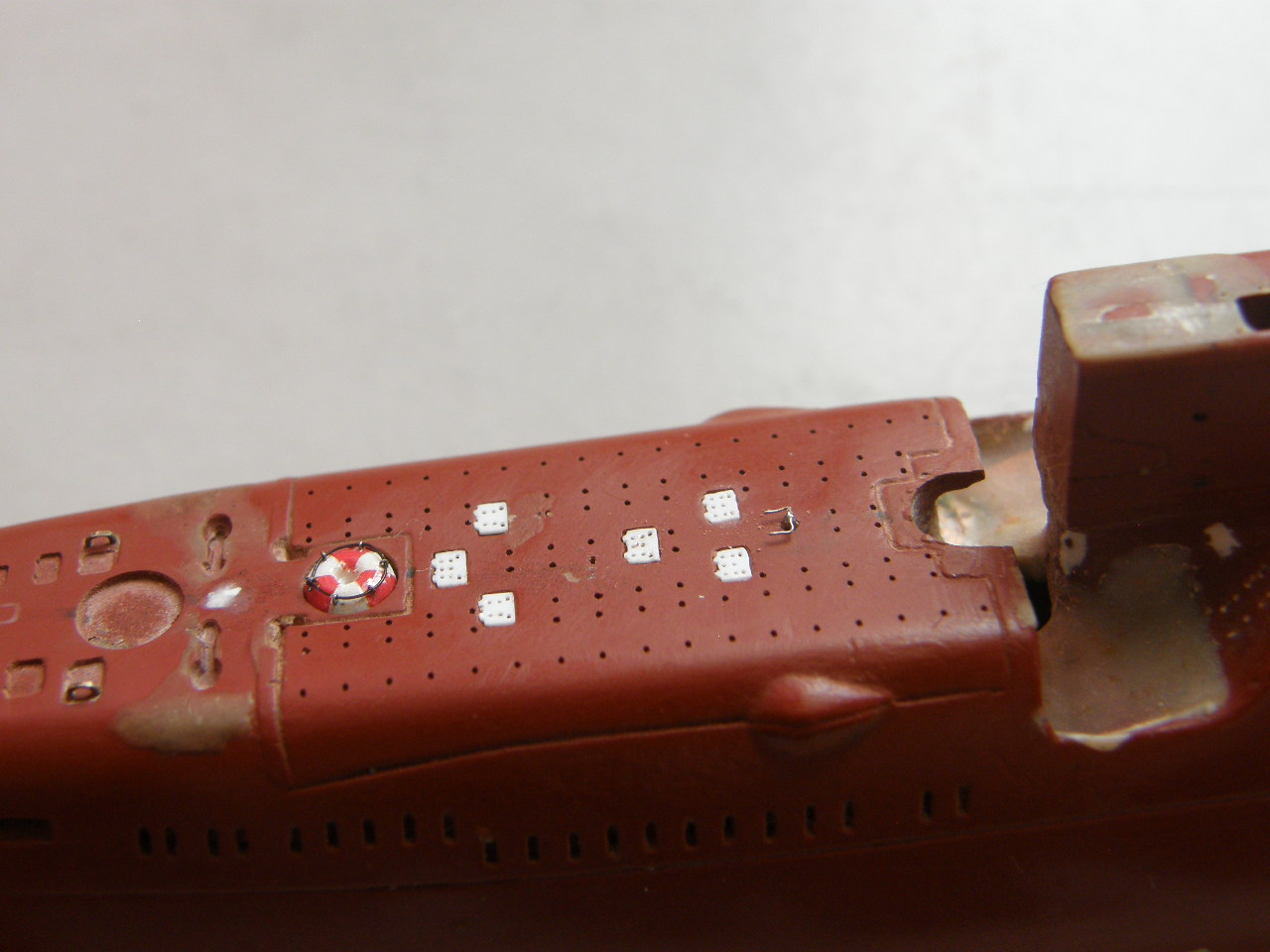Теперь можно переходить к киповым планкам и лючкам в кормовой части палубы надстройки в районе ОР (ограждения рубки).