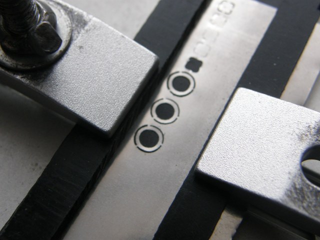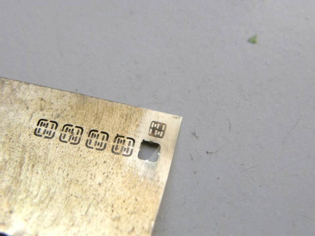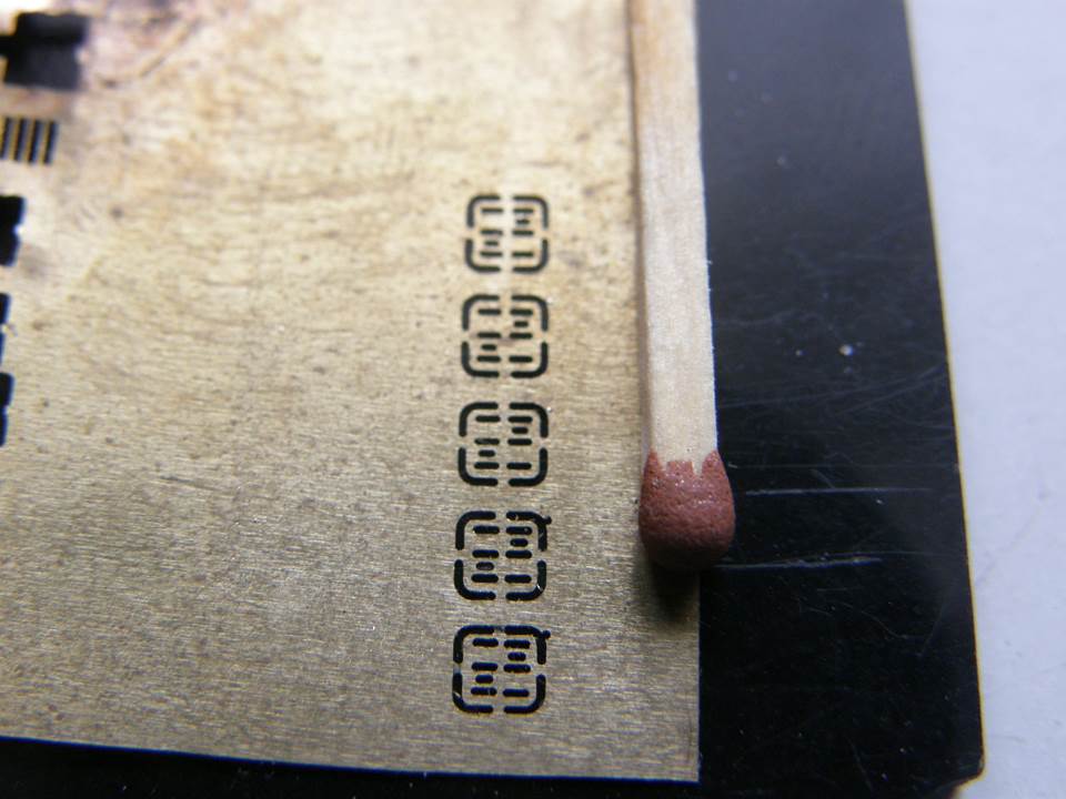Выкрасил буквы эмалью, удалил из фототравления и сделал сравнение с буквами из дошипласта.