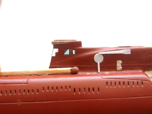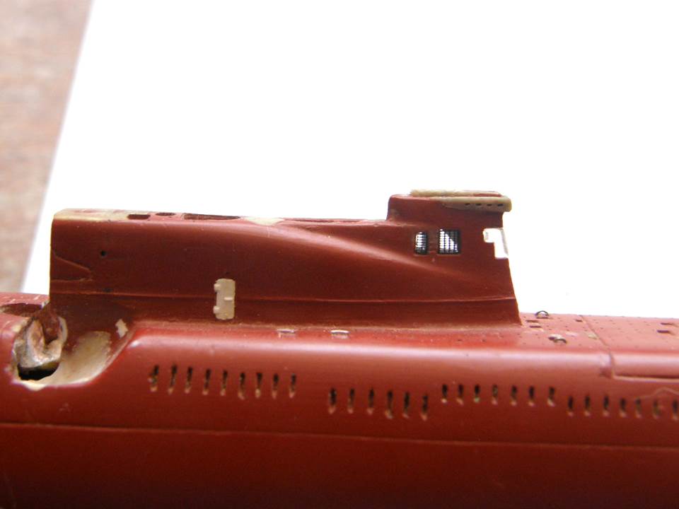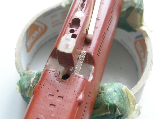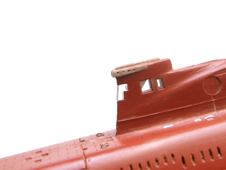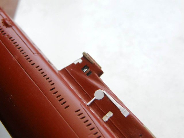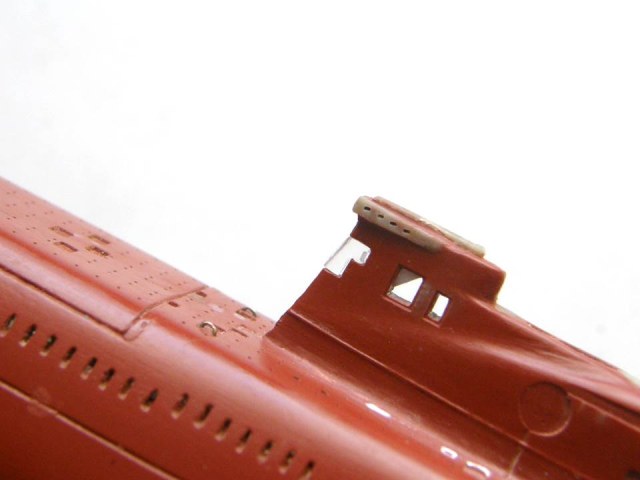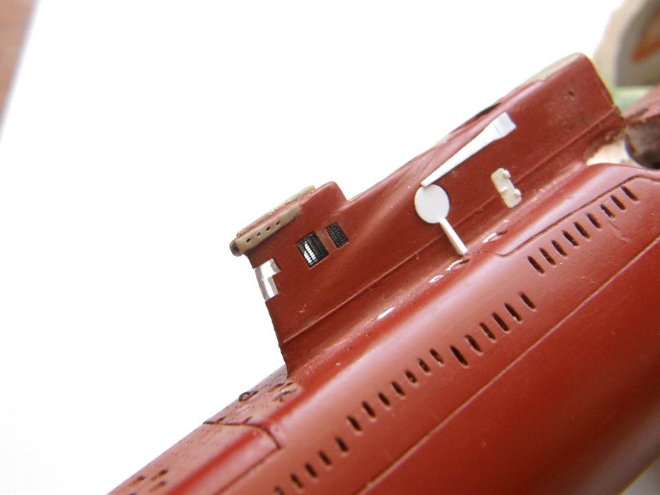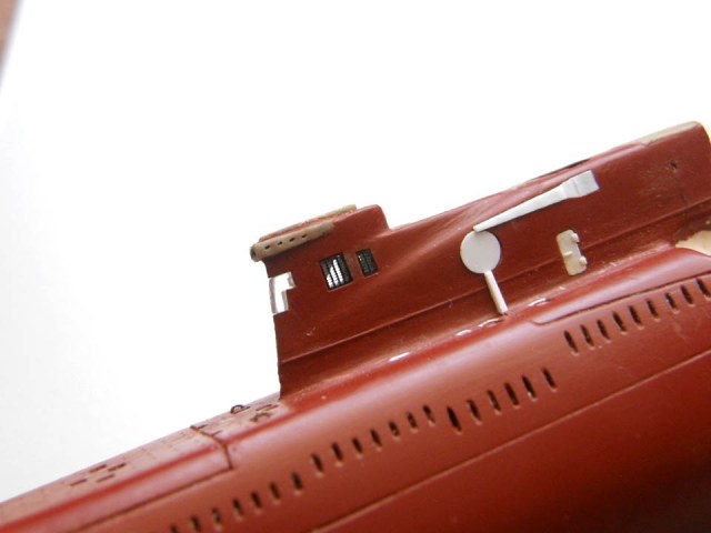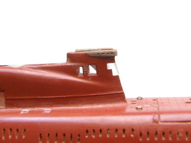 Отбивку обтекателя огней на ограждении рубки белым цветом пока планирую сделать декалями, как это уже делал на модели подводной лодки 641 проекта (ссылка).