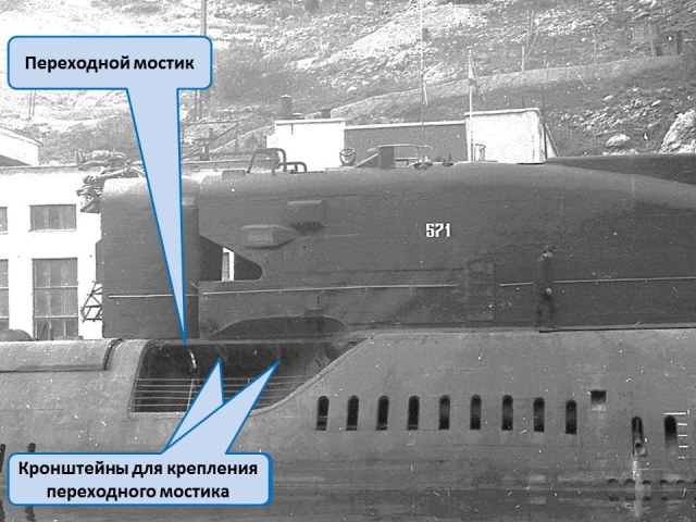 В центральной части переходные мостики снизу поддерживались двумя кронштейнами.