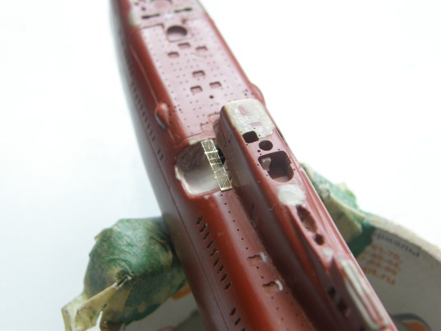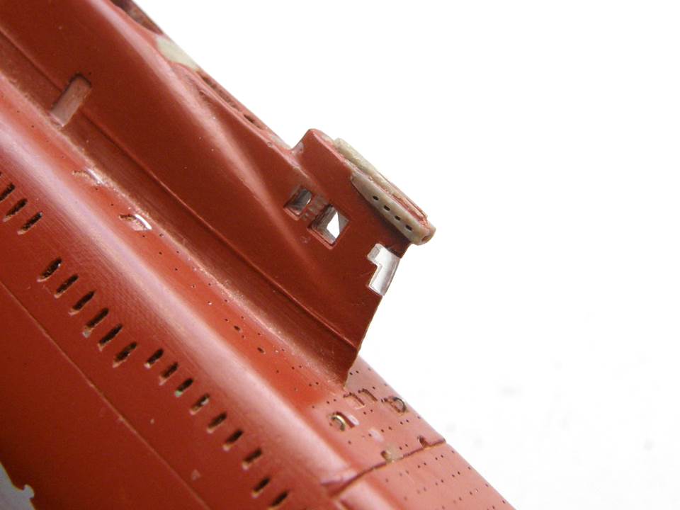 Теперь необходимо заполнить фигурный вырез в кормовой части ОР (ограждении рубки), а для этого сделать обтекатель гакабортного рубочного и кильватерного огней.