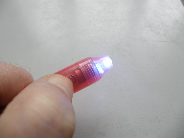 Китайский карандаш с ультрафиолетовым фонариком, подсвечивает специальный ультрафиолетовый краситель, содержащийся в лаке после его нанесения на склеиваемые детали. Экспроприирован мной у внука в пользу моделизма. Отдан совершенно добровольно и безвозмездно.