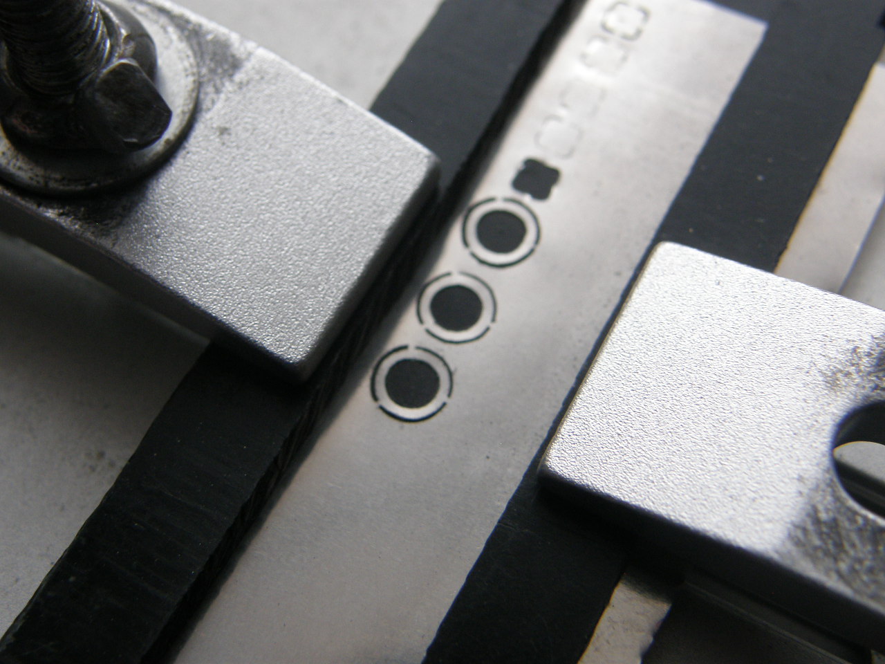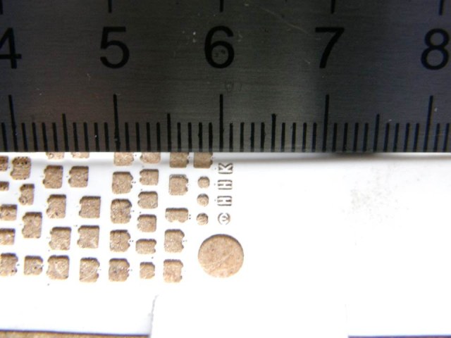 Из дошипласта толщиной 0,15 мм выгравировал буквы "Н" и "К" высотой 0,9 мм и шириной 0,7 мм.
