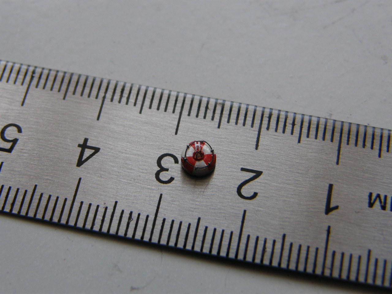 У моделистов, занимающихся моделями подводных лодок, принято делать эти площадки из алюминиевой фольги-самоклейки (толщина 0,05 мм). Во время строительства своих моделей лодок 633 и 641 проектов я делал комингс-площадки входных люков из серебряной потали (толщина 0,005 мм), но меня не устраивал оттенок комингс-площадки и теперь решил попробовать фольгу из нержавейки (толщина 0,03 мм). Фольга лежала у меня около пяти лет, но блеска не потеряла, несмотря на Приморскую влажность. Поэтому полировать ее не пришлось.