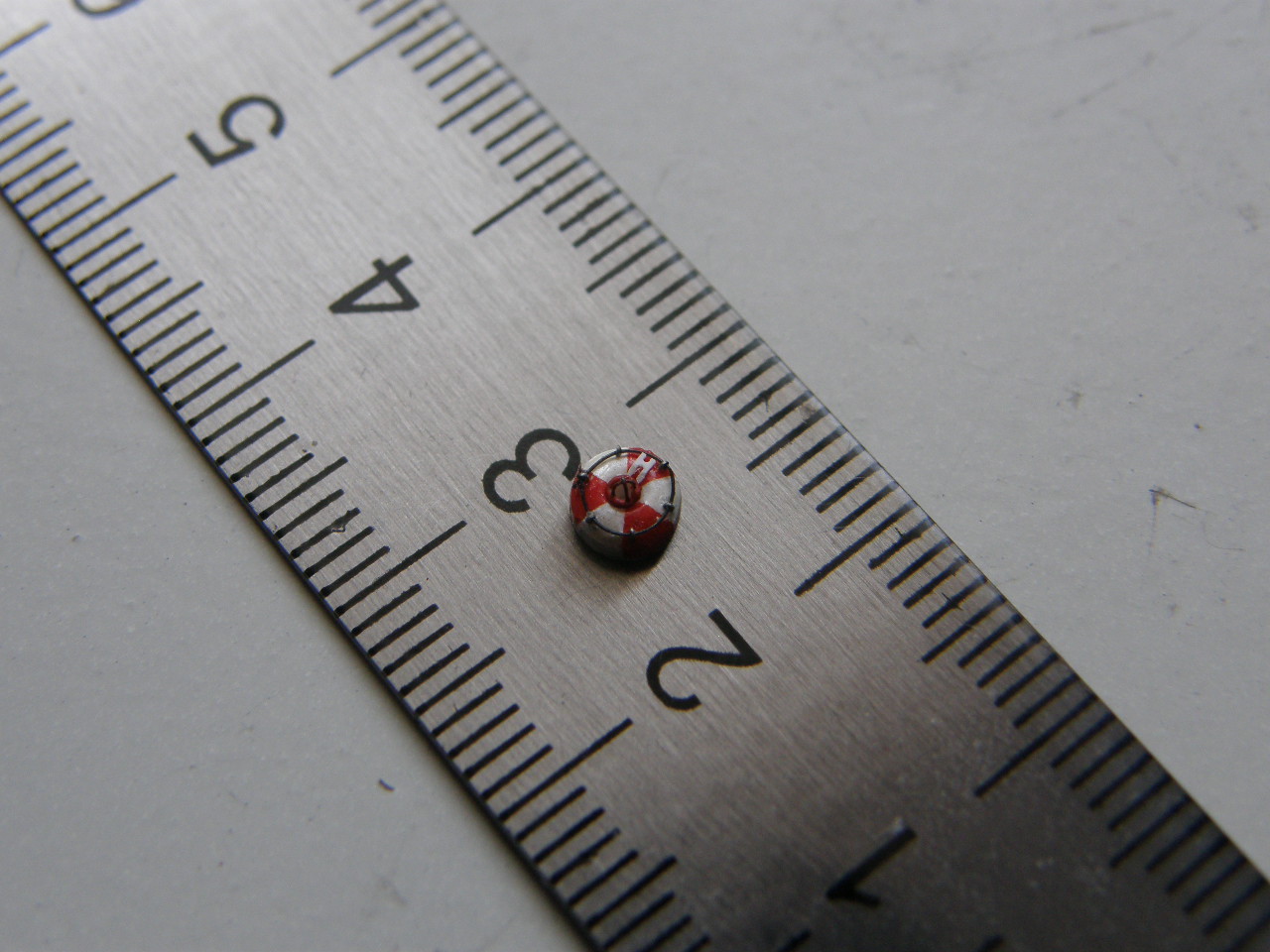 Конечно, буква выглядит несколько великовато, для масштаба 1/350 высота должна быть 0,7 мм. Но при меньших размерах теряется прочность дошипласта и невооруженным глазом виден только внешний контур буквы. Пока это оптимальный размер для букв из дошипласта: прочность буквы - ее визуальное восприятие.
