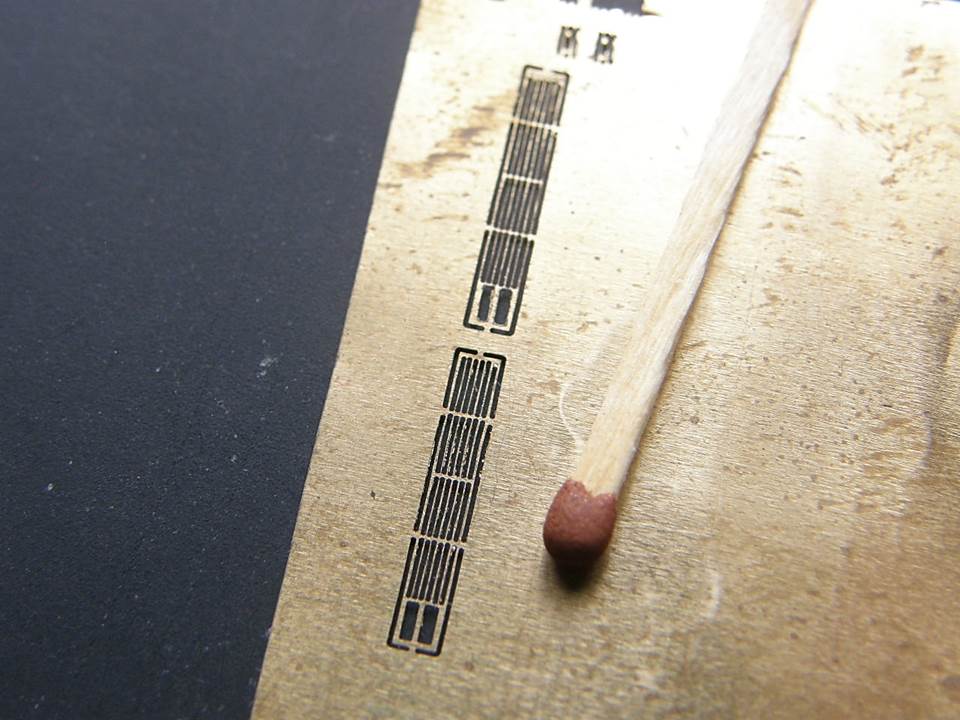 Из латунной фольги толщиной 0,05 мм выгравировал два переходных мостика.