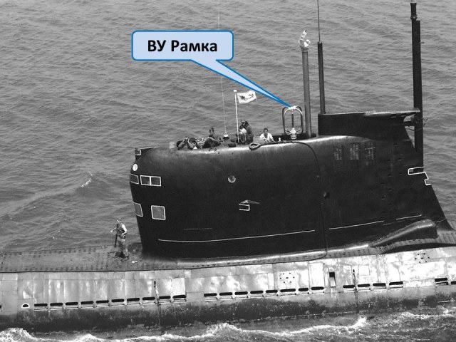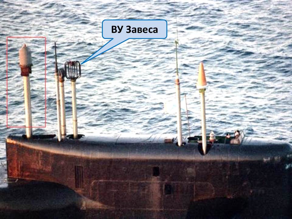 На боевой лодке в опущенном положении ВУ Накат-М выглядел вот так.