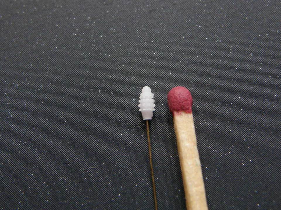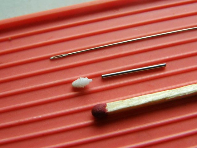 На третьей модели подводной лодки делаю датчик МГ-23 ГИСЗ (гидроакустическая станция измерения скорости звука) "Береста" (на сленге подводников - Рога) и если с защитной сеткой почти удалось справиться, то форма самого датчика оставляла желать лучшего (ссылка, пост 241 https://karopka.ru/forum/messages/forum190/topic27898/message1431805/#message1431805 ). Отчасти причиной этого был малый размер - не более 1,5 мм.