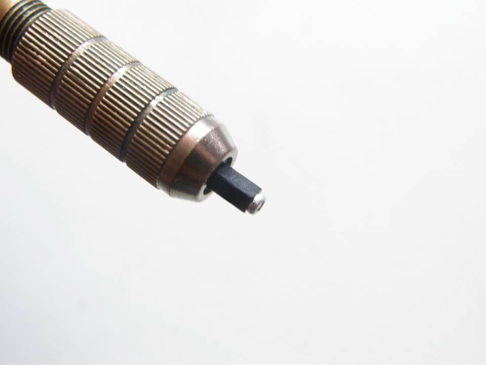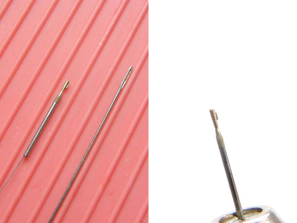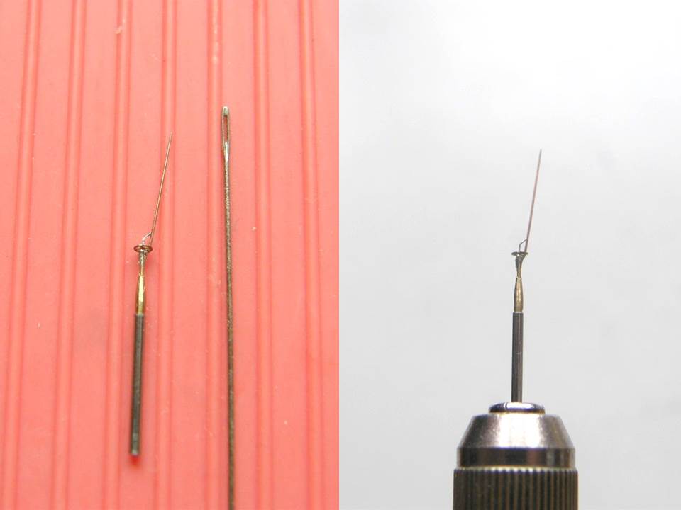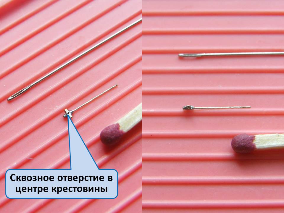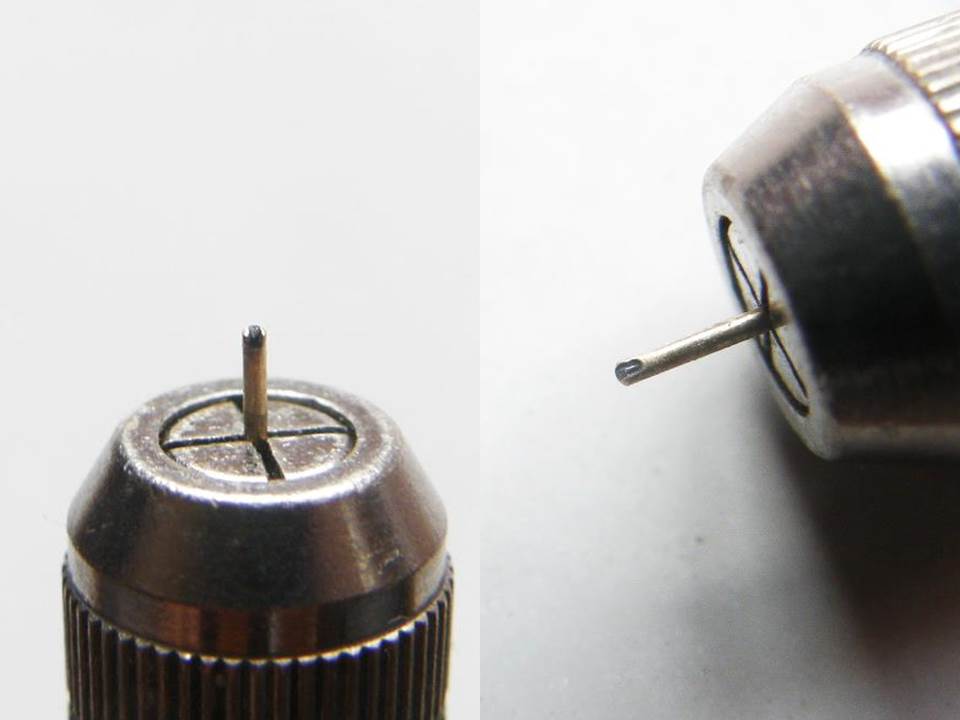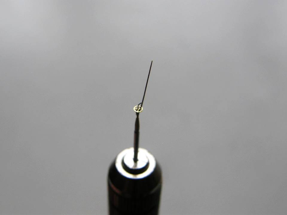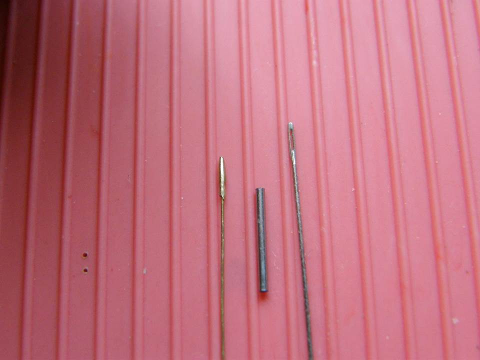 На бормашинке наждачной шкуркой зернистостью 800 сточил нижний край головной части перископа для установки ее в мачту перископа, сделанную из медицинской иглы Ø0,6 мм с внутренним диаметром 0,35 мм. Для установки верхнюю часть мачты из медицинской иглы высверлил сверлом Ø0,45 мм.