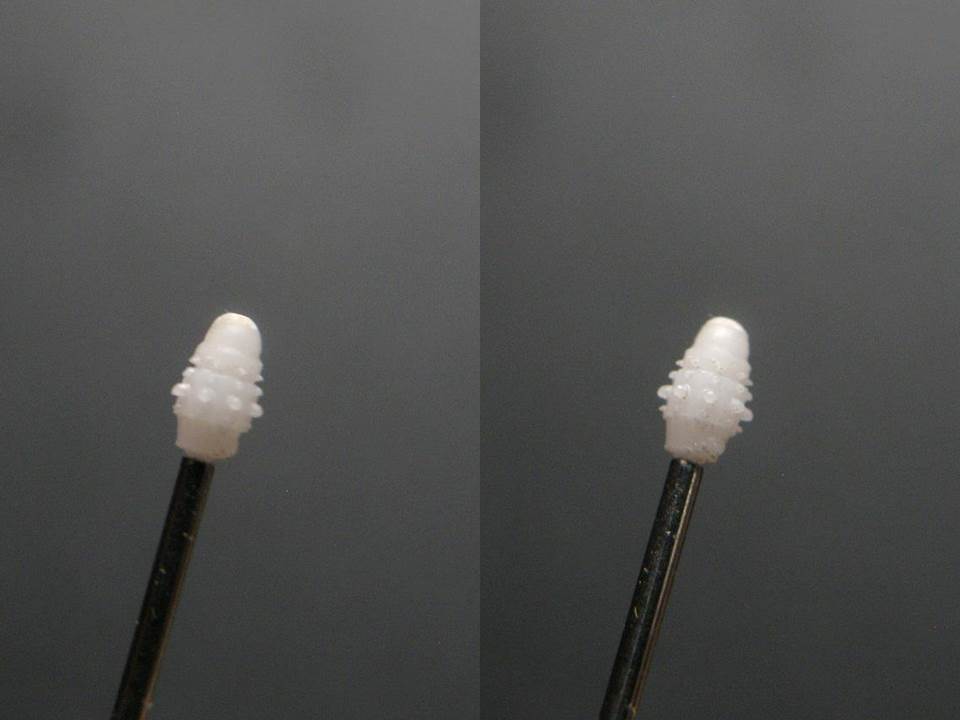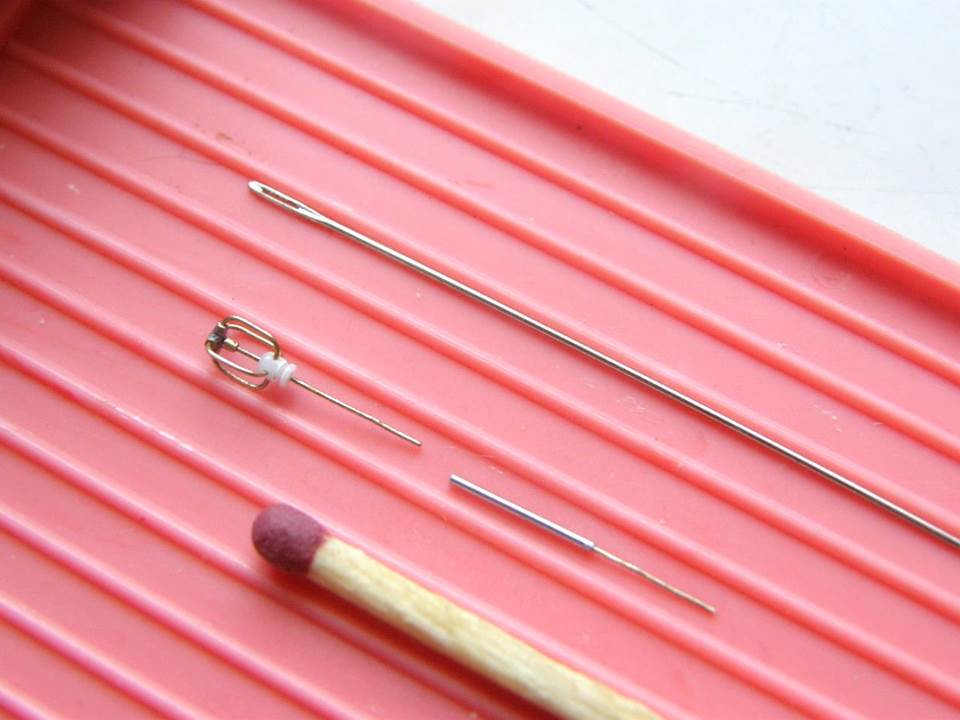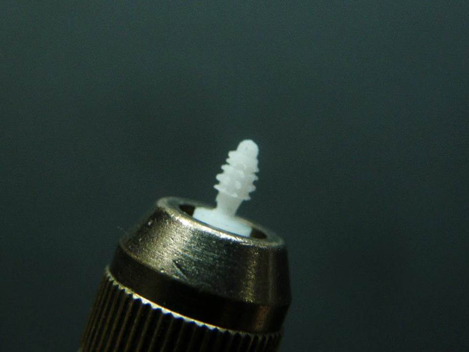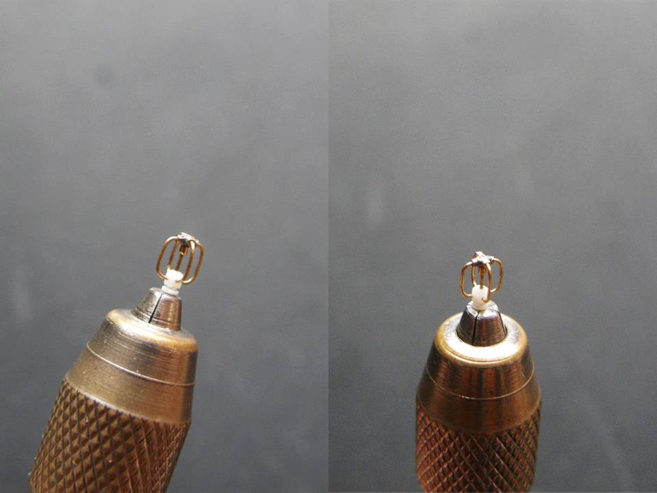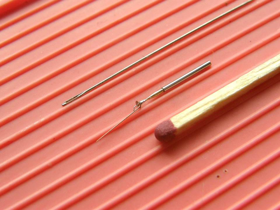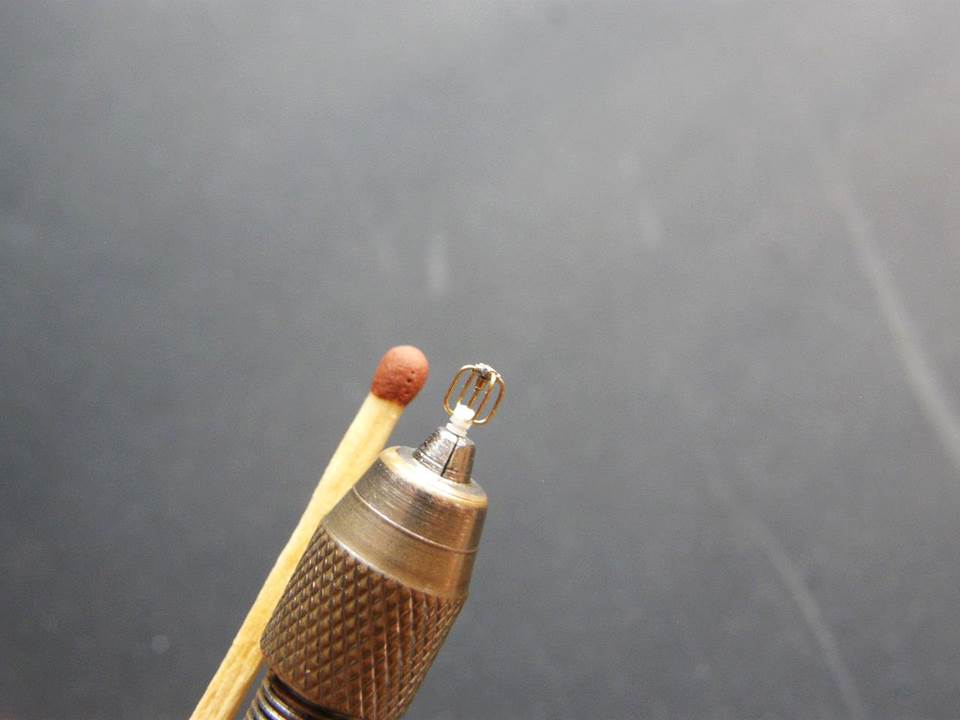 На бормашинке наждачной шкуркой зернистостью 800 сточил нижний край головной части перископа для установки ее в мачту перископа, сделанную из медицинской иглы Ø0,6 мм с внутренним диаметром 0,35 мм. Для установки верхнюю часть мачты из медицинской иглы высверлил сверлом Ø0,45 мм.