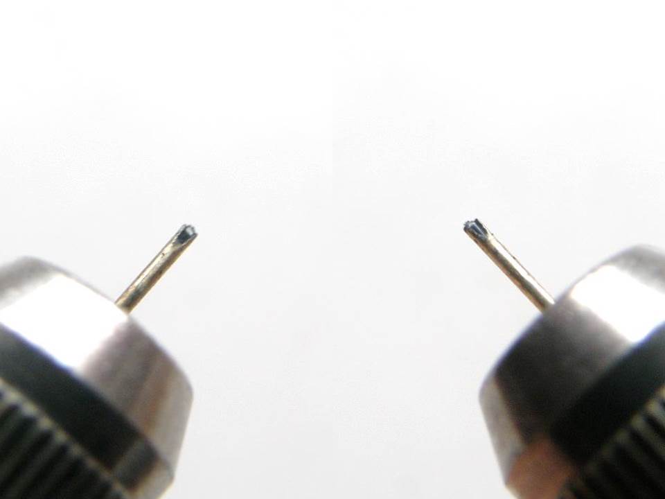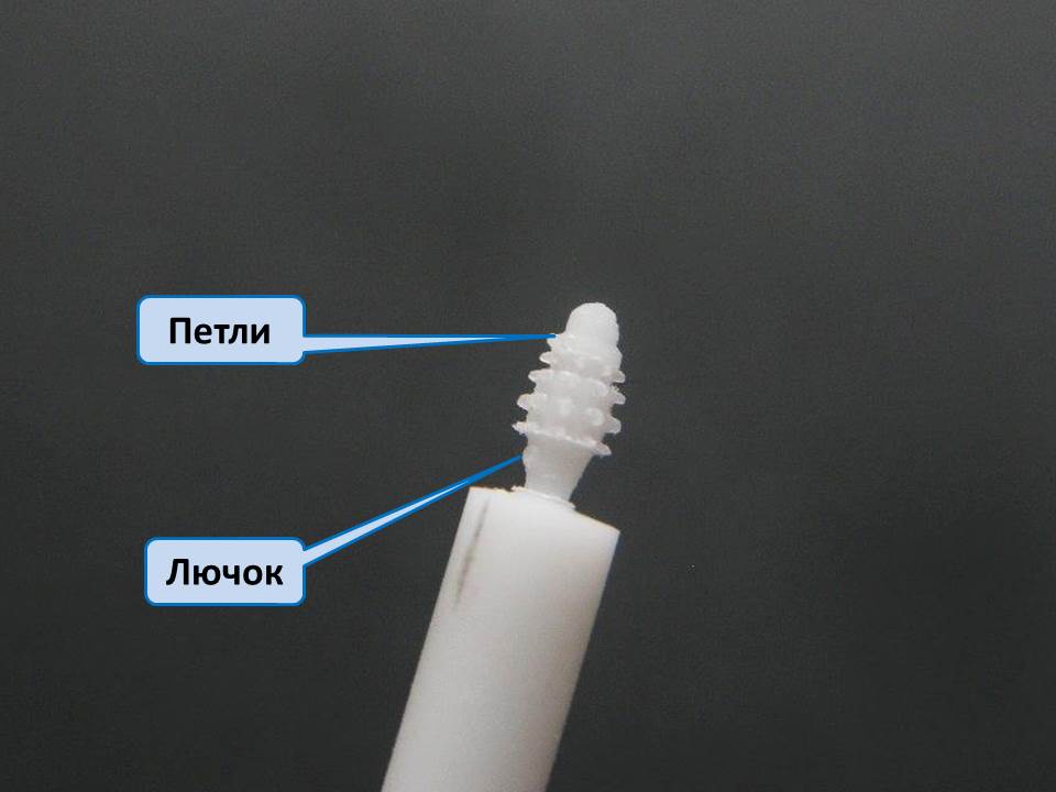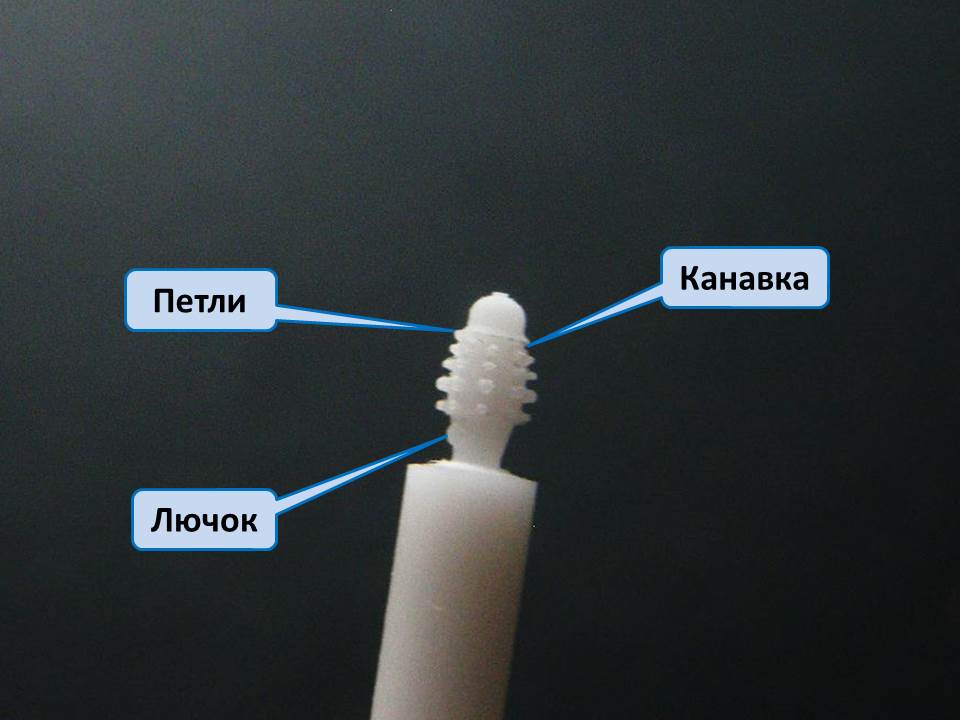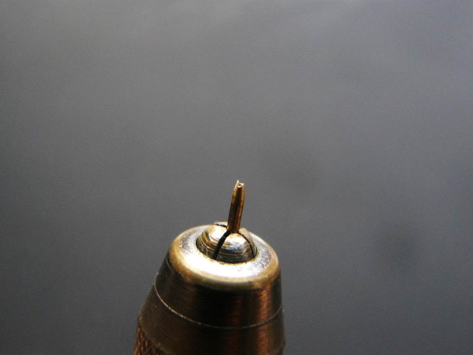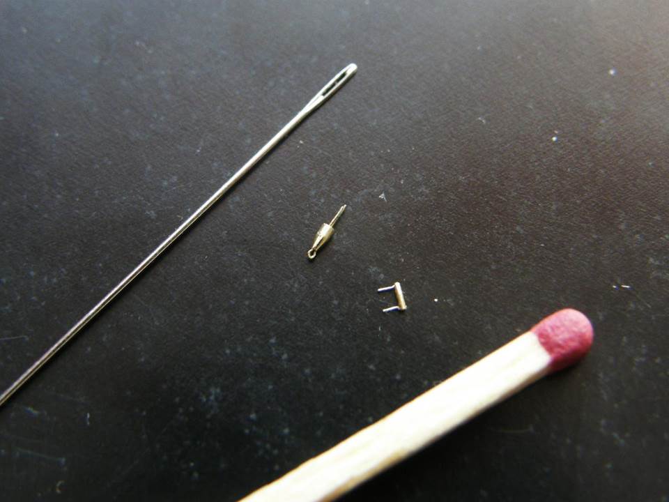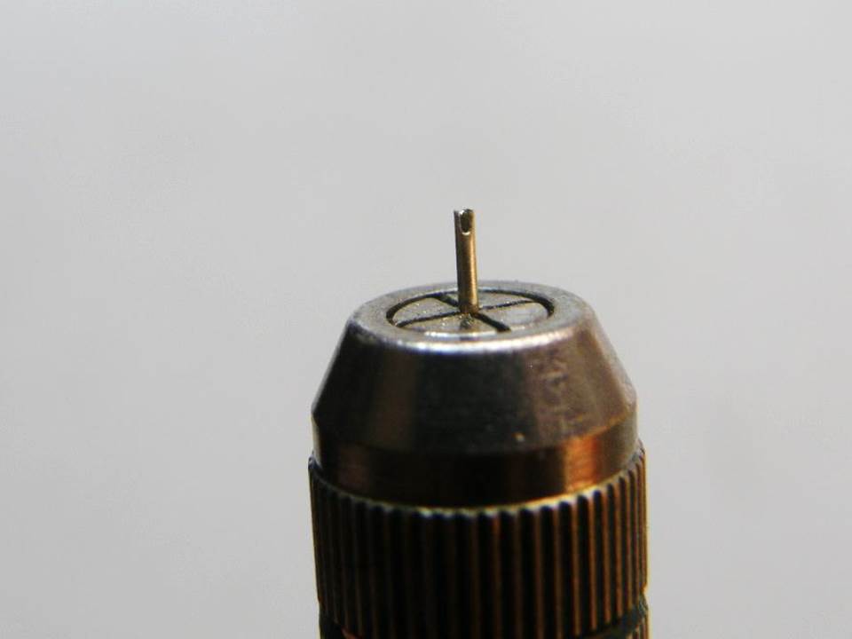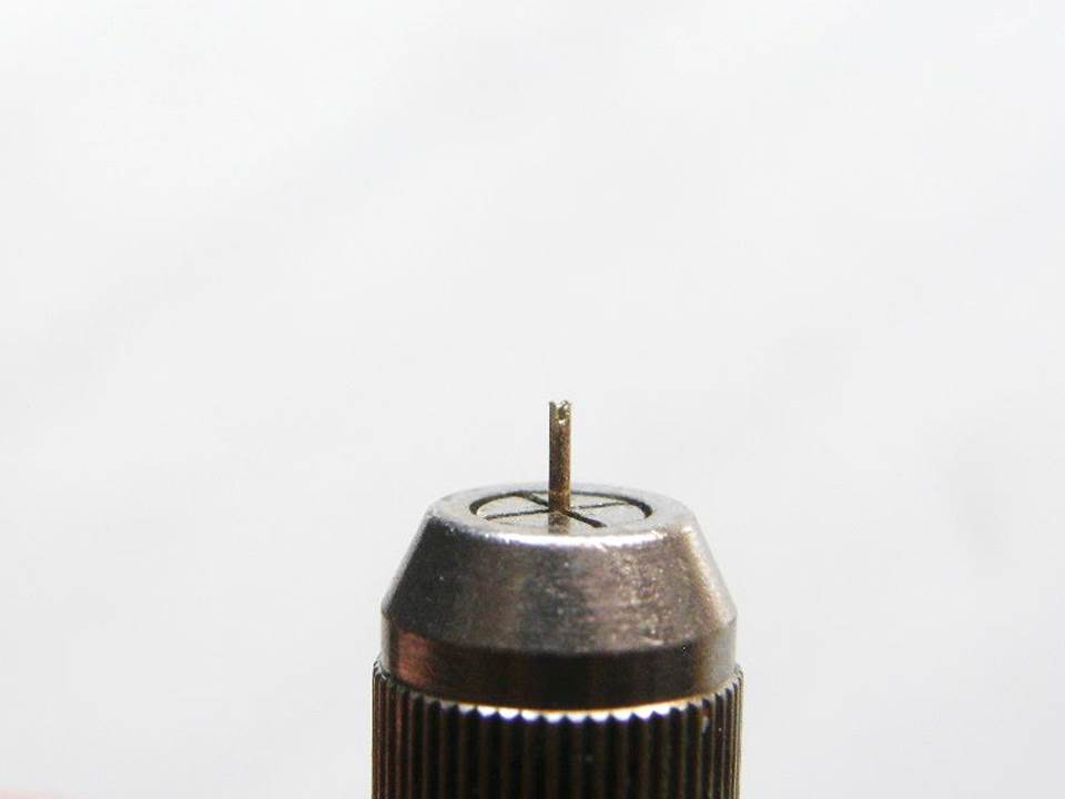 Толстостенную латунную трубку Ø0,35 мм с внутренним Ø0,1 мм обрезал до длины 1,3 мм и пилкой сделал с одной стороны надпилы глубиной 0,2 мм.