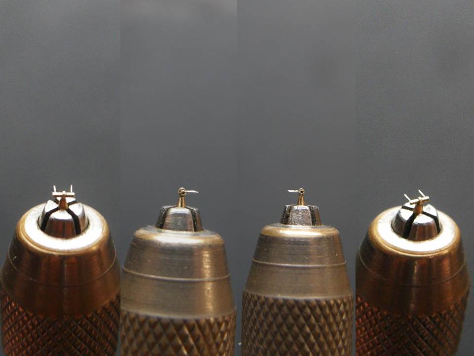 Теперь уже смело сделал сужение в центре заготовки головной части до 0,35 мм. Делал, зажав заготовку в бормашинке, шкуркой 800 и полирнул шкуркой 1200. Для компенсации биений патрона бормашинки периодически разворачивал заготовку в патроне на 180 градусов.