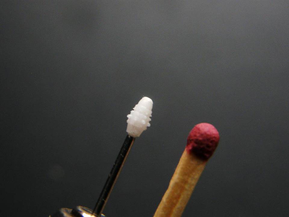 Впечатление от работы станка было такое, как будто пересел с дизелюхи на атомоход. Извлек заготовку из станка, габаритные размеры составили: высота 3, 6 мм и наибольший диаметр 2,2 мм.