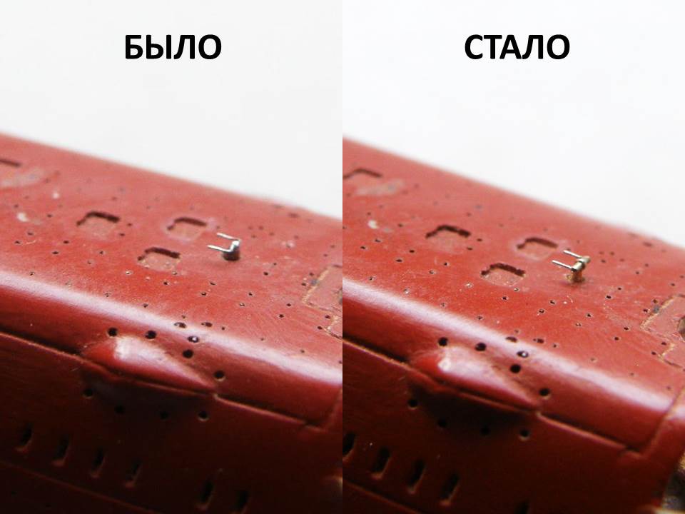 Сами рога, выходящие из трубки, обрезал до длины 0,8 мм. В комплект добавил обрезок леера от фототравления Master Tools масштаба 1/350 (06636) длиной 8 мм и толщиной 0,1 мм, лучше - длина 10 мм.