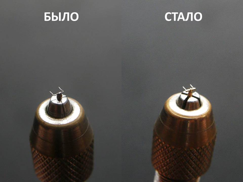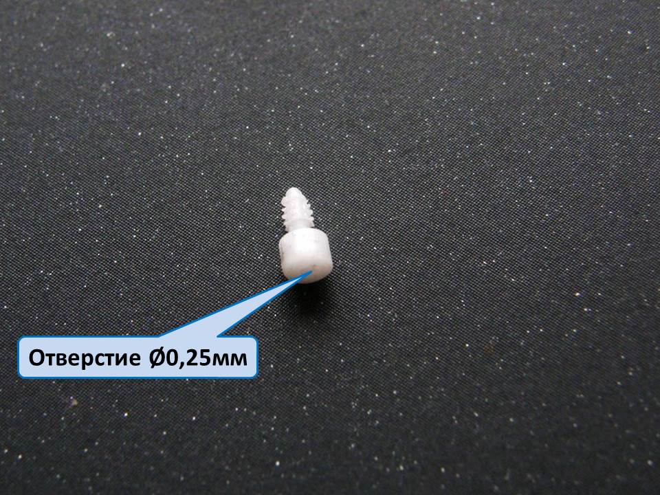 Просверлил отверстие Ø0,25 мм глубиной 3,2 мм.