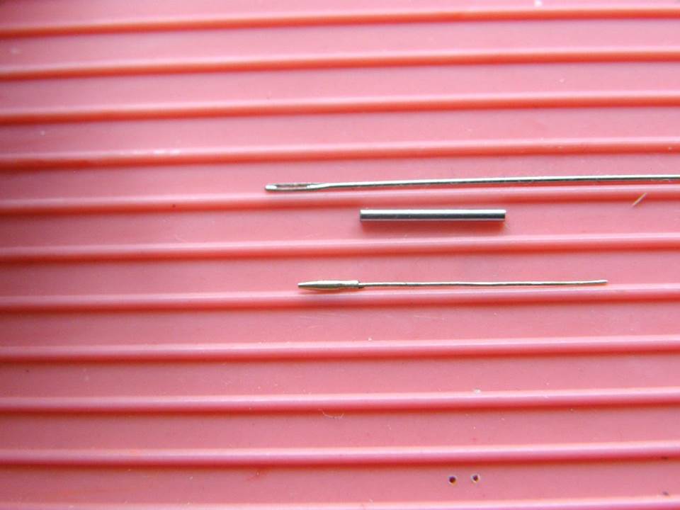 Из медицинской иглы Ø0,8 мм с внутренним диаметром Ø0,5 мм изготовил мачту ВУ, а саму антенну почистил от пластиковой стружки и отделил от прутка.
