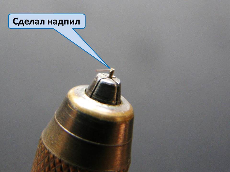 Фрезой, установленной в бормашинке, расширил и облагородил прорезь для объектива перископа. Без запила пилкой фреза отскакивает от трубки.