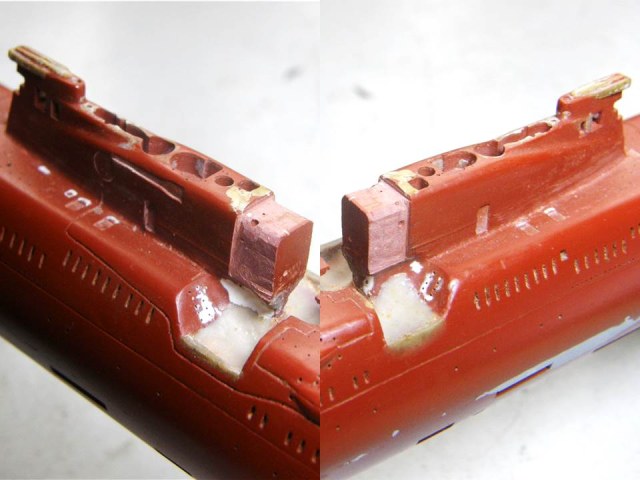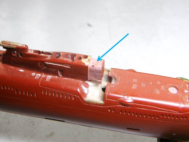 Теперь необходимо расчистить место в районе участка сопряжения ОР (ограждения рубки) с обтекателем под антенну АП "Аргумент". Этот участок делился платформой на два вертикальных участка.