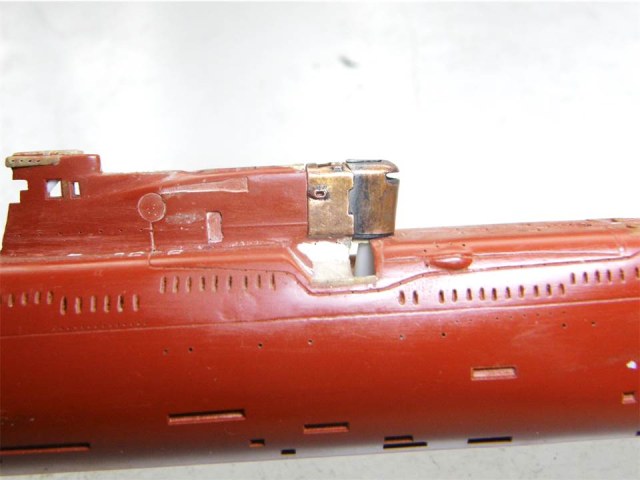 Вроде бы работа с автоматикой начала налаживаться и пора заняться железом (моделью). Для установки участка сопряжения ОР (ограждения рубки) с обтекателем сделал неглубокий (0,35 мм) уступ в носовой части ОР шириной равной ширине участка сопряжения, изготовленного из гальванической меди.