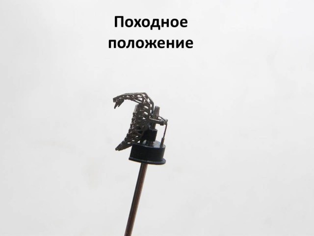 Ну вот, выполнил программу минимум и заодно ответил на вопрос Игоря Тараканова (ссылка), время оно все же показало. Во всяком случае, пока можно показывать модель с двумя положениями АП "Аргумент" (походном и боевом), поворачивая АП с помощью иголки.
