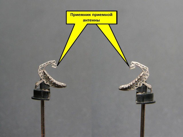 Довооружение антенны АП (антенного поста) "Аргумент" мелочевкой планировал после сборки и окраски корпуса модели, но отработка вращения АП "Аргумент" показала, что эта задача после сборки и окраски корпуса станет практически невыполнимой. Поэтому приступил сначала к установке приемника приемной (основной) антенны, изготовленного и покрашенного ранее три года назад (ссылка, ссылка и ссылка). Выделена желтым цветом. Поскольку небольшой экскурс в историю эволюции АП "Аргумент" показал его внешнюю неизменность на протяжении с 1963 года по настоящее время (ссылка), то для лучшего зрительного восприятия буду пользоваться и фотографиями АП "Аргон-1164", где отдельные элементы АП имеют более четкий вид и выгодный ракурс.